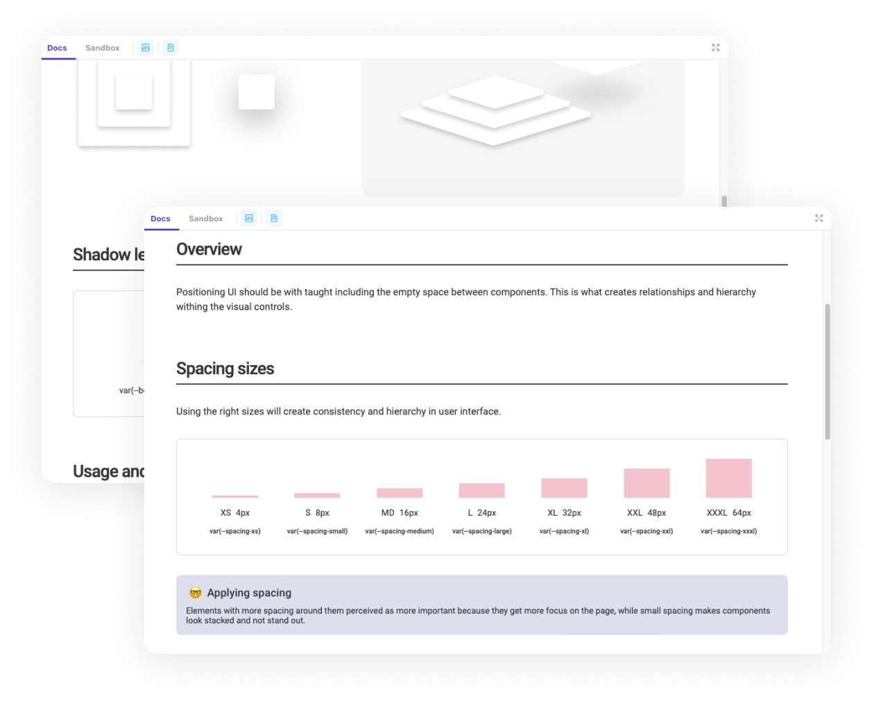 Set standards for padding, margins, sizing, and spacing user interface (UI) elements.