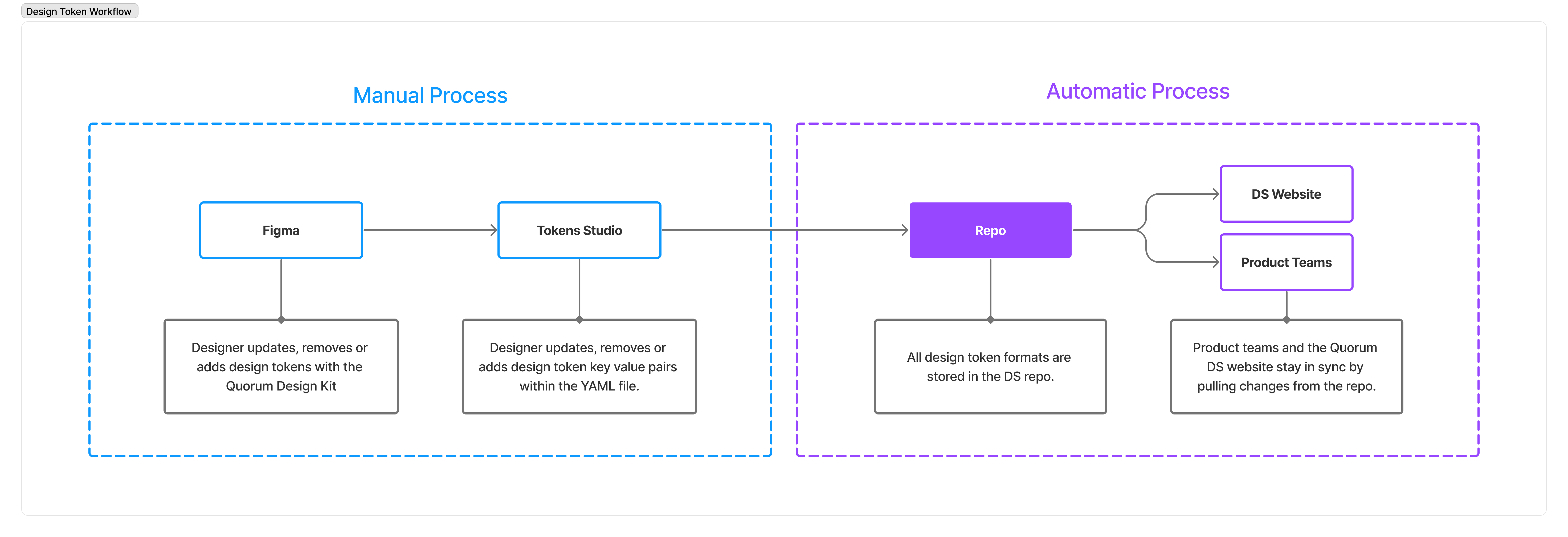 The Quorum Developer Kit is a shared repo that contains fonts, color swatches, and iconography. All CSS styles are component-specific but use variables auto-generated from our Design Token YAML file using Theo, allowing us to manage all of our Design Token properties in one place.