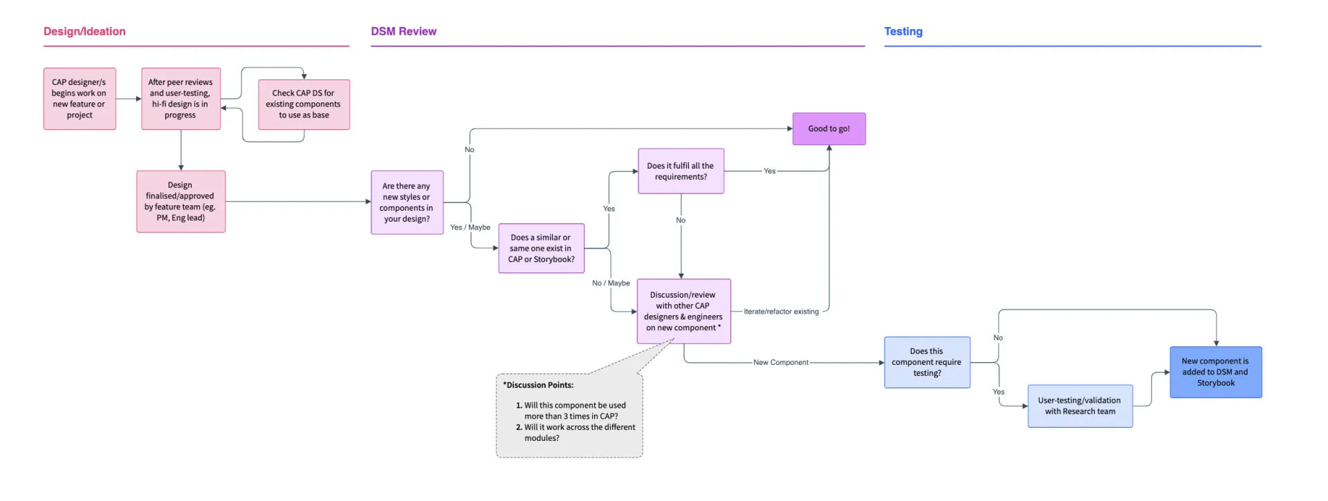 The DS Documentation website is the storefront for the DS where everything comes together. It is the living, single source of truth for design guidelines, best practices, component blueprints, code snippets, contribution workflows, resources, and much more. The site was built using Storybook.js, and workflows were established to make it easy for anyone on the team to utilize the documentation. Our documentation was thorough covering the design continuum, from design principles to interactive examples and anatomy breakdowns of each component.